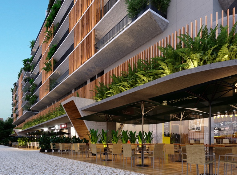– No térreo, lojas, que terão a oportunidade de oferecer serviços premium diferenciados, de conveniência a gastronomia, criando um novo polo de consumo e lazer no bairro (similar ao que existe hoje na Conde de Bernadotte e Dias Ferreira), trazendo segurança para os moradores e para o entorno.